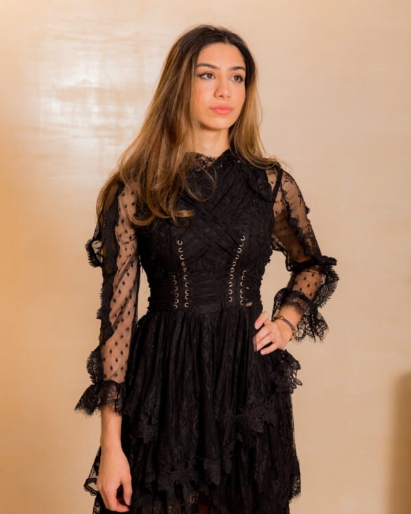 Black Long Lace Dress with Corset Detail