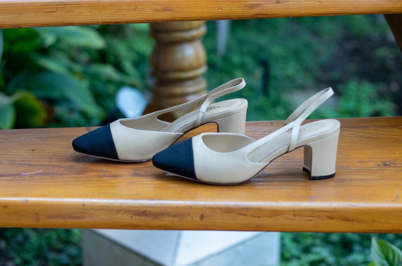 Cream And Cream Slingback Block Heel