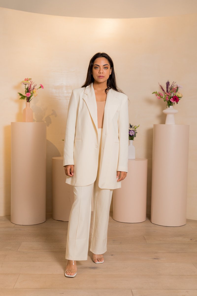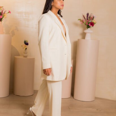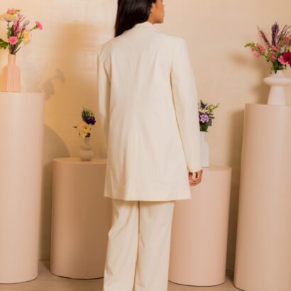 Cream oversized long line , long sleeve blazer and ankle length pants with pintucks