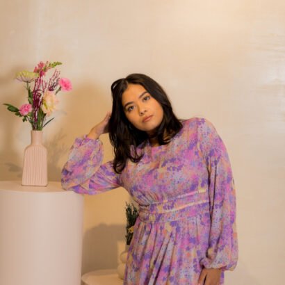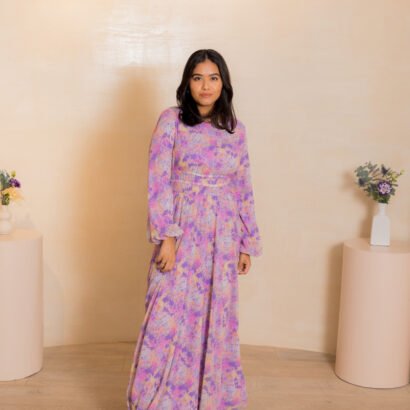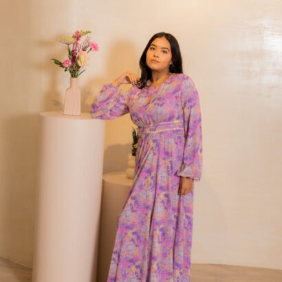 Be the first to review “Purple Long Dress with colourful paint design”